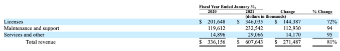 Indeed, maintenance and support revenues grew from 36% of its revenues for the fiscal year ending January 31, 2020, to 38% of its most recent fiscal year. Bad? No. Worth noting? Yes.