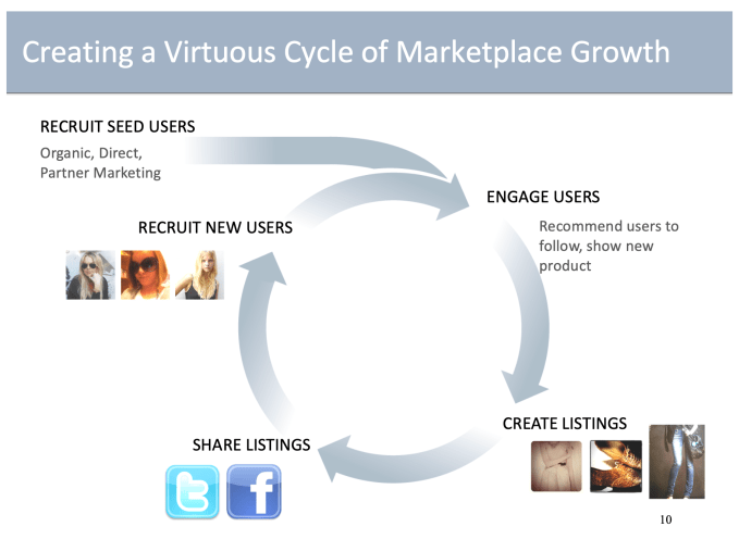 Seed new users on the platform, suggest people for them to follow, watch them eventually list their own merchandise, share it on social and bring on new users. Again, it seems obvious now but this type of marketplace strategy was relatively nascent back in 2011.