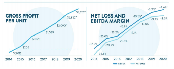 But do they make any sense? Yep, somewhat. Carvana, the American Cazoo, shared the following charts in its Q4 2020 report: