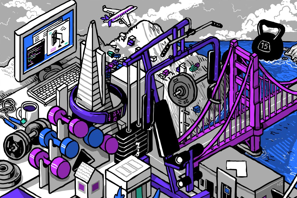 With a strategy and talent, now Vance needed to begin shooting classes. RiptLabs opened up its first production studio just down the street in SoMa at 6th and Bryant, although a significant number of shoots occurred in the startup’s Folsom St. office, too. Vance employed a two-camera setup against a drab gray-tone wood background for filming weight classes, giving Vance and his growing production crew the ability to pick and choose between shots they would stitch together into one cohesive class. Everything started feeling like it was coming together.