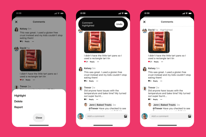 It’s launching comment moderation tools that will allow creators to remove and filter comments on their content, as well as tools that will allow them to feature up to three comments in the comment feed to highlight positive feedback. New spam prevention tools will help to clear out some of the unwanted comments, too, by leveraging machine learning technology to detect and remove bad comments.