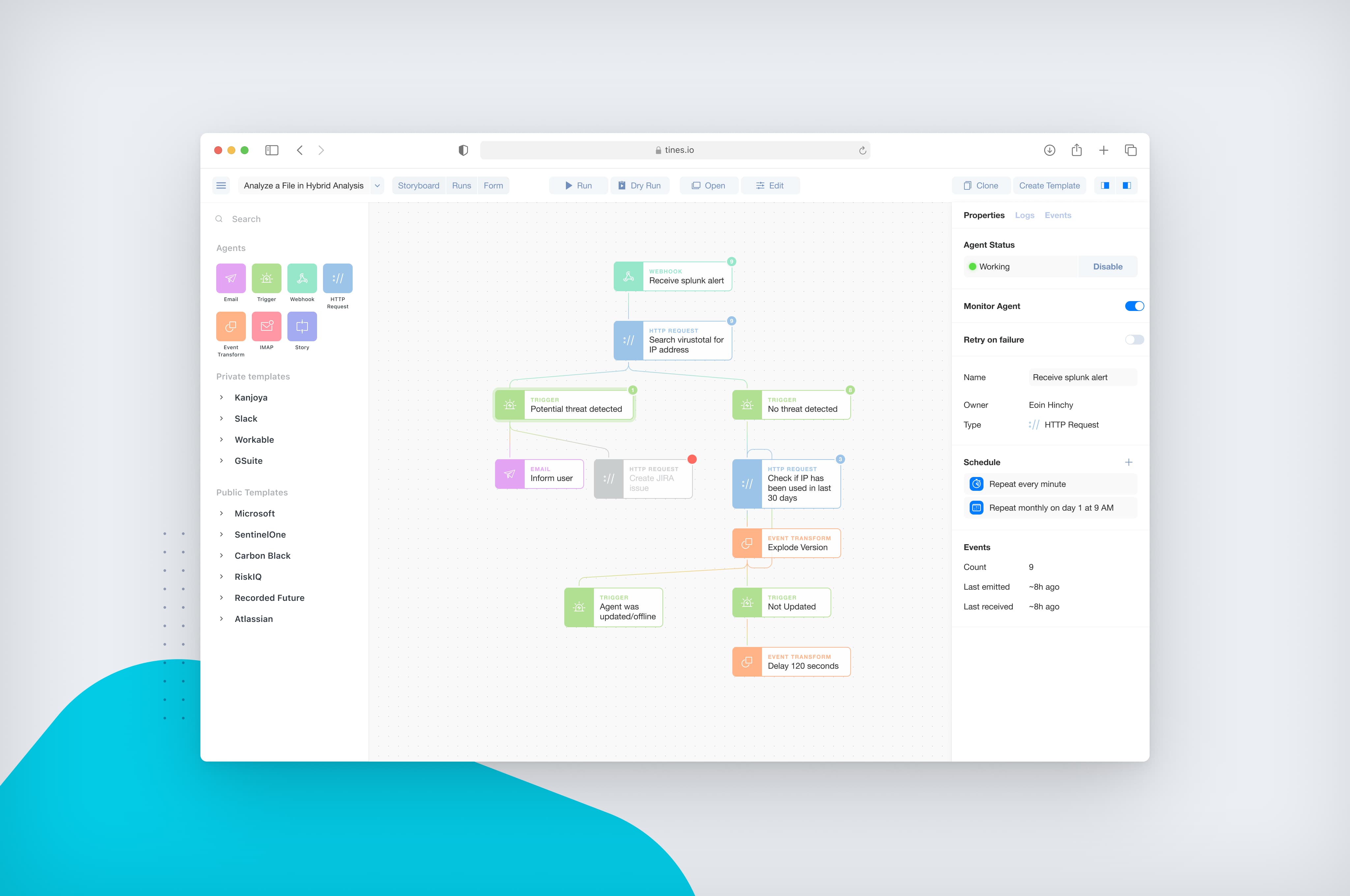 Given that Tines co-founders Eoin Hinchy and Thomas Kinsella were both in senior security roles at DocuSign before they left to start their own company in 2018, it’s maybe no surprise that the company’s platform launched with a strong focus on security operations. As such, it combines security orchestration and robotic process automation with a low-code/no-code user interface.