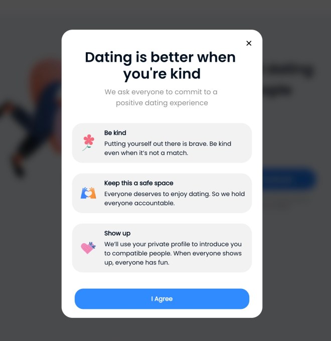 They also characterized the app as undergoing a “small, external beta test” designed to generate insights about how video dating could work, in order to improve people’s experiences with Facebook products. The app is not currently live on app stores, only the web.