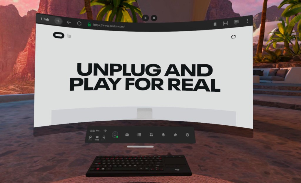 Today’s updates include added keyboard support that not only allows users to link their device but see it inside VR; this support is limited to a single model from a single manufacturer (the Logitech K830) but Facebook says they’ll be adding support down the road to other keyboards. Users with this keyboard will be able to see outlines of their hands as well as a rendering of the keyboard in its real position, enabling users to accurately type (theoretically). Infinite Office will also allow users to designate where their real-world desk is, a feature that will likely help users orient themselves. Even with a keyboard, there’s not much users can do at the moment beyond accessing the Oculus Browser it seems.