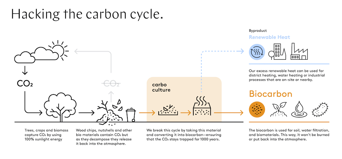 Carbo Culture describes its process as an “ultra-rapid conversion” where woody residues are turned into functional biocarbons at an extremely high temperature. The process then “locks” the carbon into a sort of charcoal that won’t degrade for 1,000 years.