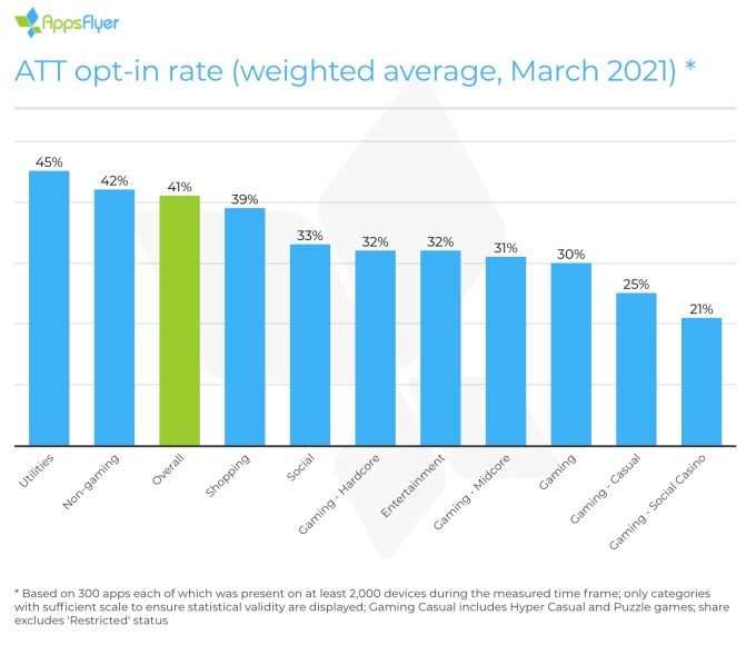 The study was not a small sampling, either. The company counted 13,260,824 times when a prompt was shown to the end-user and found that 5,495,084 times (or 41%) the user tapped the “Allow” button. This took place in March 2021 across over 300 apps in multiple categories, including both apps and games.