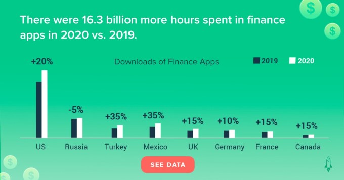 A separate report by Sensor Tower found that finance app installs jumped 34% year-over-year in Q1 in the U.S. and Europe.