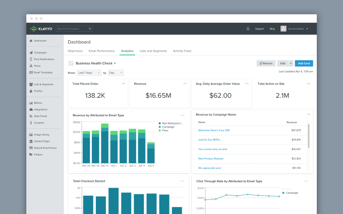 So what makes Klaviyo’s Campaigns and Flows different? The company itself would argue that it does, in fact, beat the competition on email design and aesthetics — another of its main features is a large library of email templates. But the core feature that sets Klaviyo apart is largely invisible, residing in the breadth and depth of the data it collects and stores natively. Despite having had several years to catch up, most ESPs still act as a layer on top of external data stores.