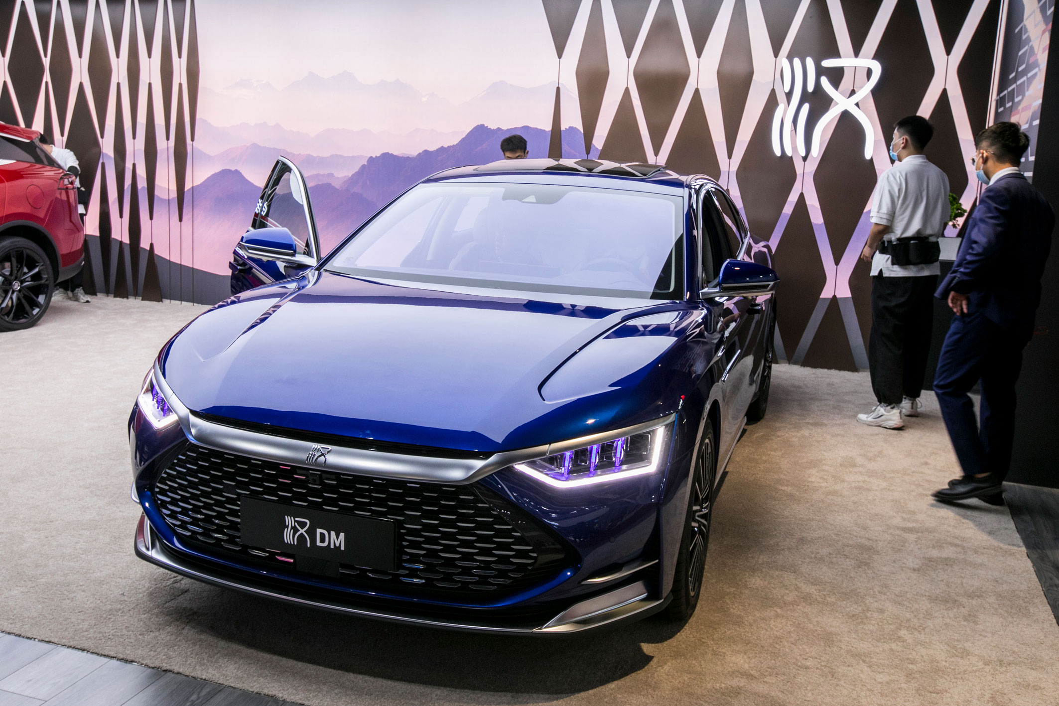 BYD’s Han flagship series includes three electric vehicles and one hybrid vehicle. Named after China’s Han dynasty, the luxury electric sedan series launched sales last year. BYD’s long-range EV can go for about 375 miles, and the company claims its vehicle’s “blade” battery pack is safer than traditional battery packs.