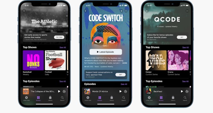 In a press release, Apple said the first premium subscriptions would come from both “independent voices and premier studios,” including Tenderfoot TV, Pushkin Industries, Radiotopia from PRX and QCODE, as well as larger brands like NPR, the Los Angeles Times, The Athletic, Sony Music Entertainment and others.