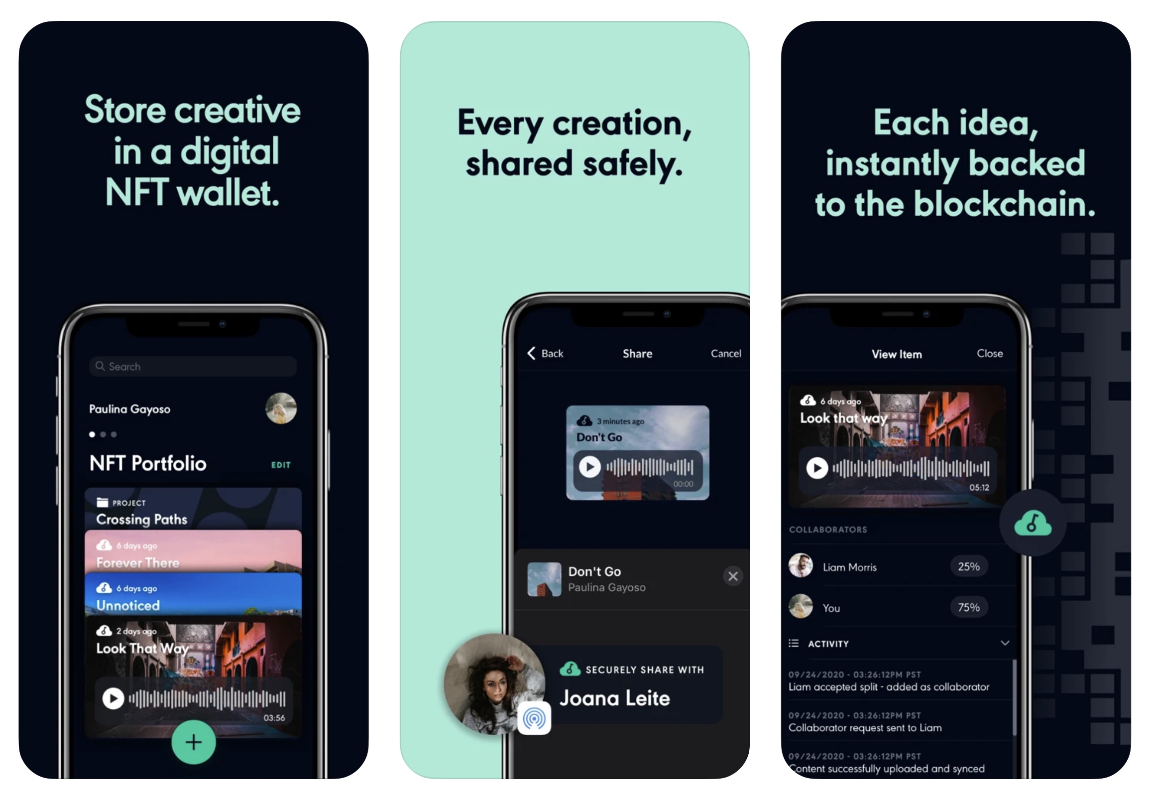 The team behind the app sees a future where artists use the platform as an autosave for their intellectual property during the creative process, enabling them to scribble down notes or upload a quick demo and save those moments on the blockchain, a step that they hope can eliminate or expedite rights disputes for creators that can point to a clearly time-stamped breadcrumbs trail. By virtue of the app’s name, it’s clear that they are aiming to attract songwriters and musicians in particular, but the company’s onboarding also showcases wider ambition in the creator world, enabling users to designate if they are a photographer, writer or programmer as well.