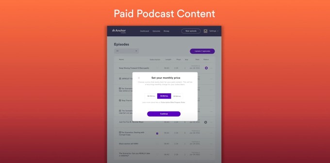 To use the paid podcasts feature, creators will mark their episodes within Anchor after first recording or uploading their episodes. For listeners who want to access the content on a different podcasting app, a private RSS feed will be provided after they subscribe.