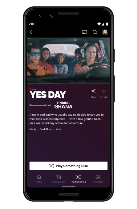 Netflix today is officially launching a feature that will make it easier to find something to watch when you’re stuck browsing and unable to make a decision. The service is introducing a tool called “Play Something” to users worldwide — the final iteration of that “shuffle” feature you may have already seen during Netflix’s tests over the past year. When selected, Netflix will play another show or movie it thinks you’ll like, based on your interests and prior viewing behavior.