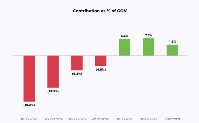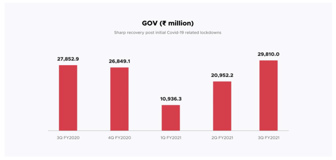 However, the company has since bounced back, posting what its prospectus describes as “GOV growth of 91.6% and 42.3% in the second and third quarters of Fiscal 2021 respectively, over the immediately preceding quarters.” And that final GOV result in Q3 of fiscal year 2021, or the fourth calendar quarter of 2020, was the company’s best ever. (“Our GOV in the third quarter of Fiscal 2021 was ₹29,810 million, which was the highest GOV that we have achieved in any quarter till December 2020,” per Zomato itself.)