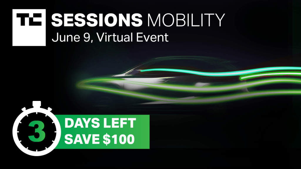 TC Sessions: Mobility 2021 takes place on June 9, but you have only 72 short hours left to save $100 on all the info and opportunity that TC Sessions: Mobility 2021 offers. Kick distractions to the curb. Buy your pass before the early-bird price disappears on Thursday, May 6 at 11:59 pm (PT).