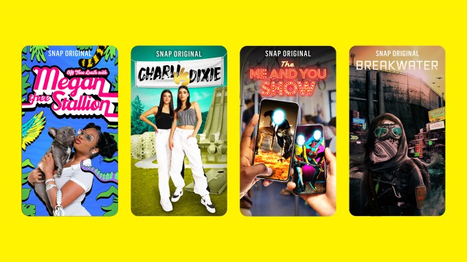 The company also on Wednesday announced it’s snagging two of TikTok’s biggest stars for its upcoming Snap Originals lineup: Charli and Dixie D’Amelio. The siblings, who have gained over 20 million follows on Snapchat this past year, will star in the series “Charli vs. Dixie.” Other new Originals will feature names like artist Megan Thee Stallion, actor Ryan Reynolds, twins and influencers Niki and Gabi DeMartino, and YouTube beauty vlogger Manny Mua, among others.
