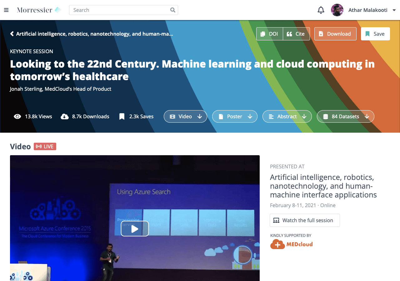First, Morressier works with a society to create a landing page for an upcoming conference. Researchers can apply to present their research at said conference. Morressier then aggregates all the research submissions and begins conducting a peer review process, with academics from the society validating the research and deciding if it’s relevant. The peer review process can often happen offline on Excel sheets and Word documents, so Morressier helps move the entire operation online. Once the peer review is done, the startup creates a content library to go along with a virtual or in-person conference where it can live indefinitely.