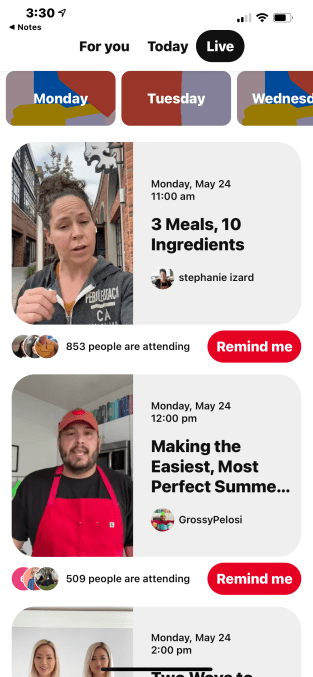 The rise of the creator economy and a pandemic-fueled demand for virtual events led Pinterest to explore the idea of livestreaming. Last fall, it began testing a “class communities” feature that allowed users to sign up for Zoom classes through Pinterest, while creators used Pinterest’s boards to organize materials, notes and other resources. These communities also included a group chat option and shopping features.