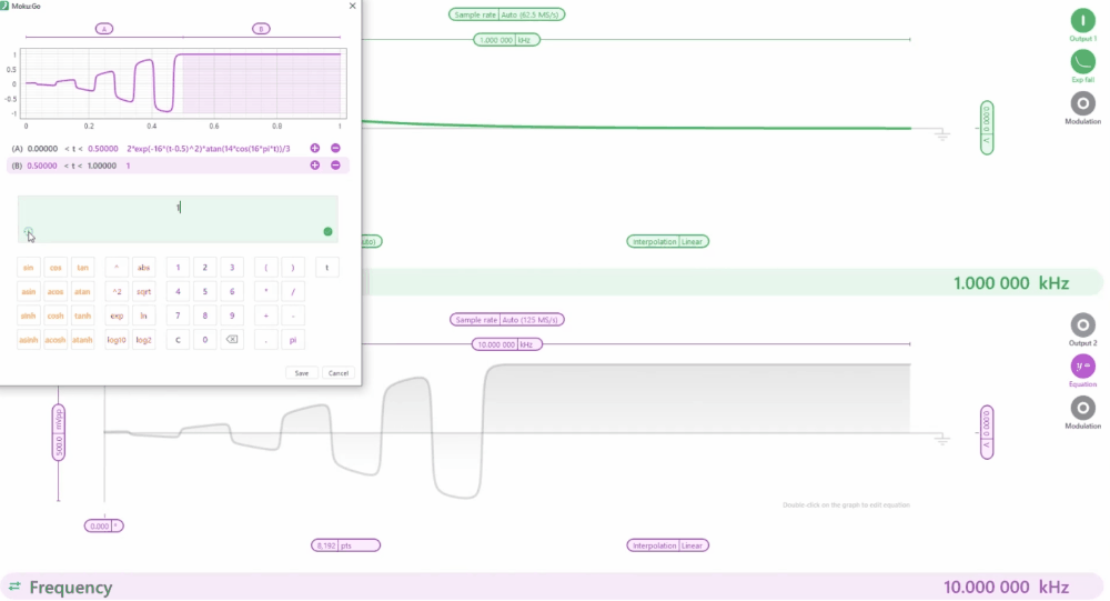 You access and configure them using a software interface rather than a bunch of knobs and dials — though let’s be clear, there are good arguments for both. When you’re teaching a bunch of young digital natives, however, a clean point-and-click interface is probably a plus. The UI is actually very attractive; you can see several examples by clicking the instruments on this page, but here’s an example of the waveform generator: