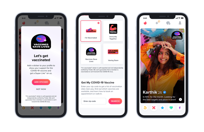 On Tinder, anyone who adds a sticker to their profile promoting their vaccination status between June 2 and July 4 will be gifted a free Super Like. (Proof of vaccination isn’t necessary, but really, you should get vaccinated if it’s available where you live.) Tinder and other apps will also add vaccination site resources from Vaccine.gov to help people figure out where they can get the shot nearby.