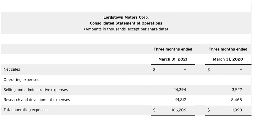 And then its earnings arrived. Here’s what Lordstown came up with during Q1 2021 (via TechCrunch reporting and the company’s earnings document):