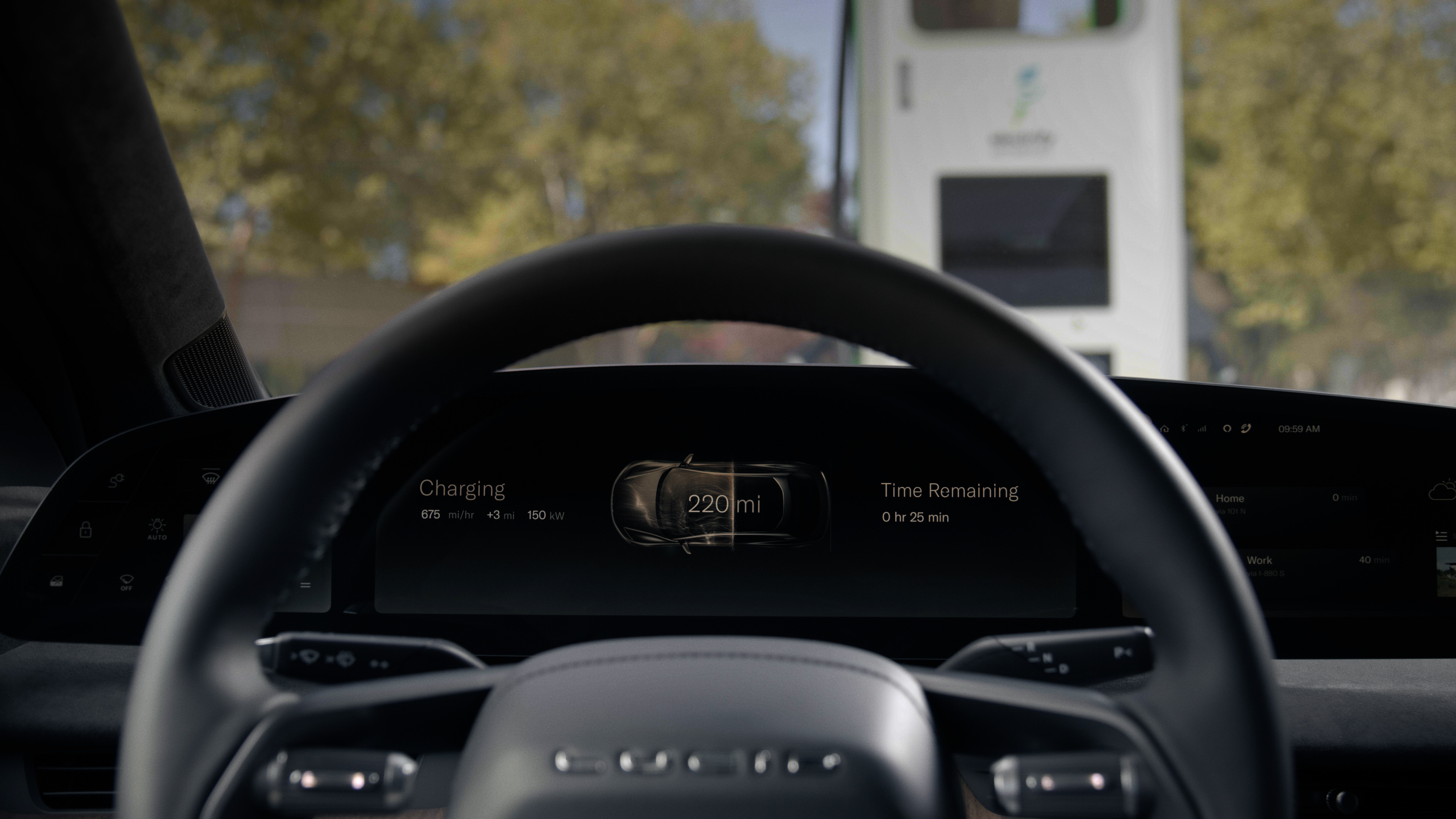 To the right of the steering wheel is another touch display that Lucid is calling the home screen. It’s here that navigation, media and communications will be located.