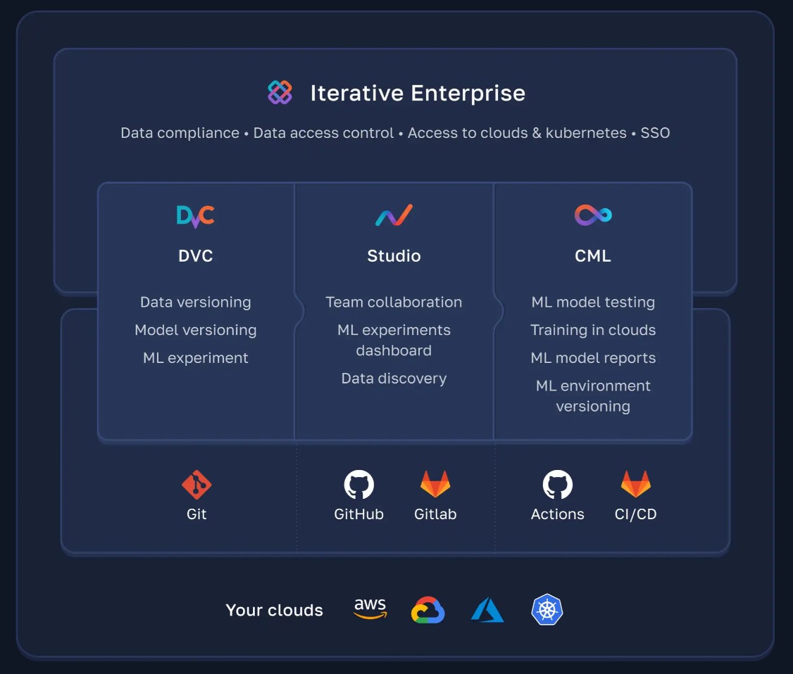 The core idea behind Iterative is to provide data scientists and data engineers with a platform that closely resembles a modern GitOps-driven development stack.