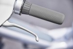 The white body is reflective and there’s an LED ring light up front that can change colors. The company says it’s testing different applications, beyond a simple headlight and bike locator. The ring is segmented and can turn various colors, so something like turn signals could make sense going forward. There are nice little touches throughout, as well — like the hand-bar grip, which is designed to look like tiny mustaches as a nod to that odd accoutrement from the service’s early days.