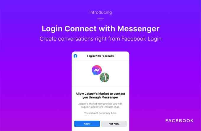 Facebook at its developer conference F8 also introduced Facebook Login Connect with Messenger. For businesses that have already integrated with Facebook Login, this allow users to log in to their app using their Facebook credentials and opt in to chat with businesses over Messenger, all in the Facebook Login flow. The tool is in closed beta.
