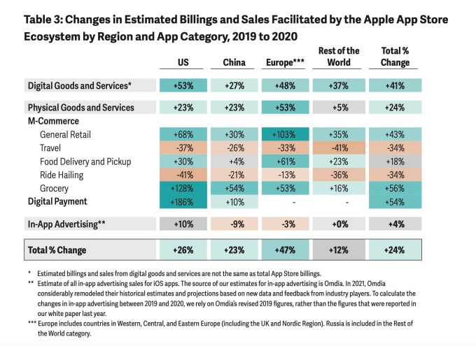 Ahead of WWDC, Apple also updated its report (conducted on its behalf via the Analysis Group) on App Store commerce. The company says the App Store facilitated $643 billion in billings and sales in 2020, up 24% from the $519 billion seen the year prior. It also noted that about 90% of the billings and sales facilitated by the App Store actually took place outside its walls, meaning Apple took no commission on those purchases. This is up from the 85% figure reported last year. The full report delves into other trends related to the pandemic’s impact, small and large businesses, and more. Apple initially commissioned the report to demonstrate how little business on the App Store is actually subject to App Store fees, but now it’s updated the report a year later. It’s interesting how much understanding Apple has about its App Store, especially when Tim Cook claimed to know so little about several crucial figures.