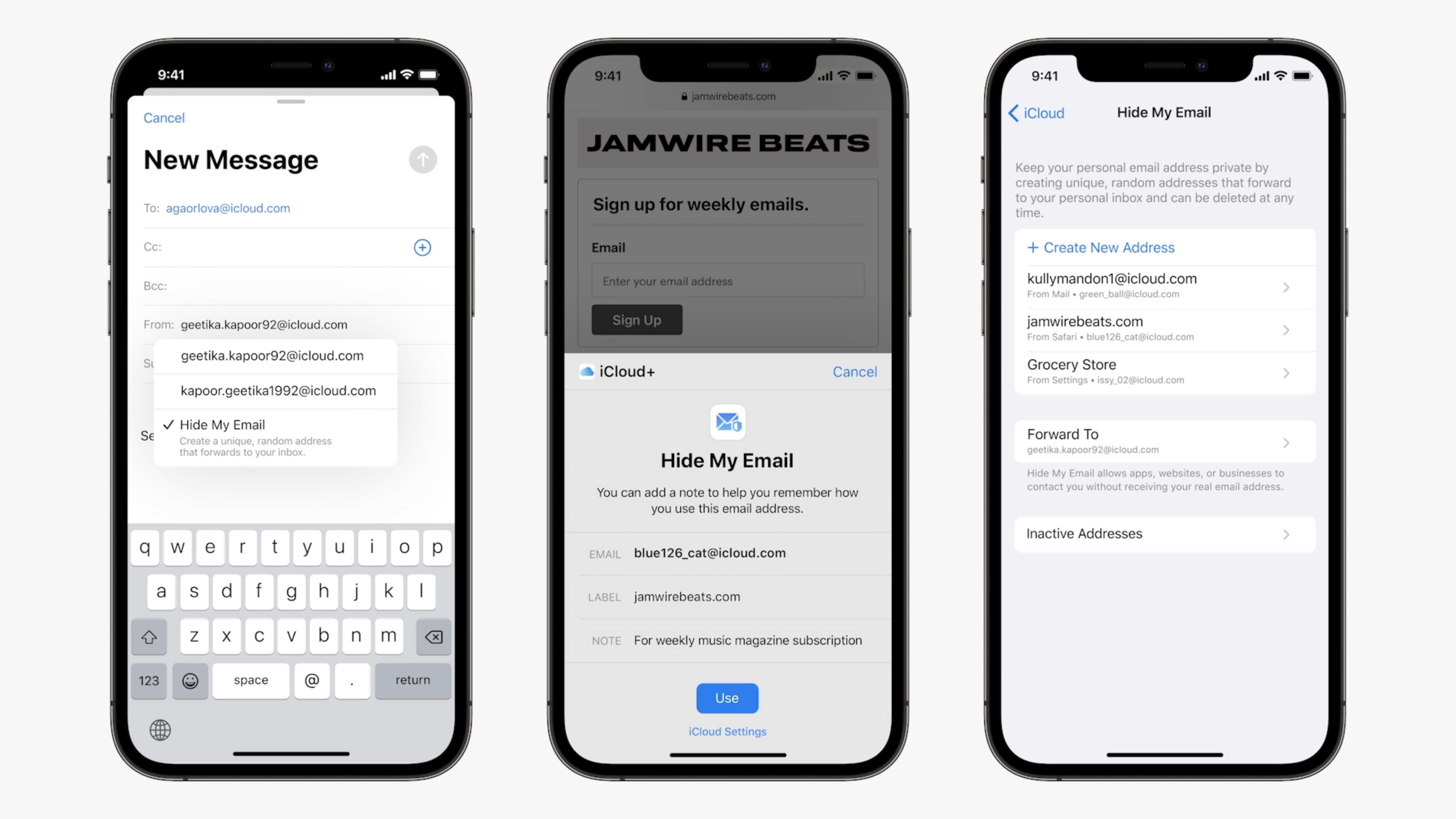 The second iCloud+ feature is ‘Hide my email’. It lets you generate random email addresses when you sign up to a newsletter or when you create an account on a website. If you’ve used ‘Sign in with Apple’, you know that Apple offers you the option to use fake iCloud email addresses. This works similarly, but for any app.