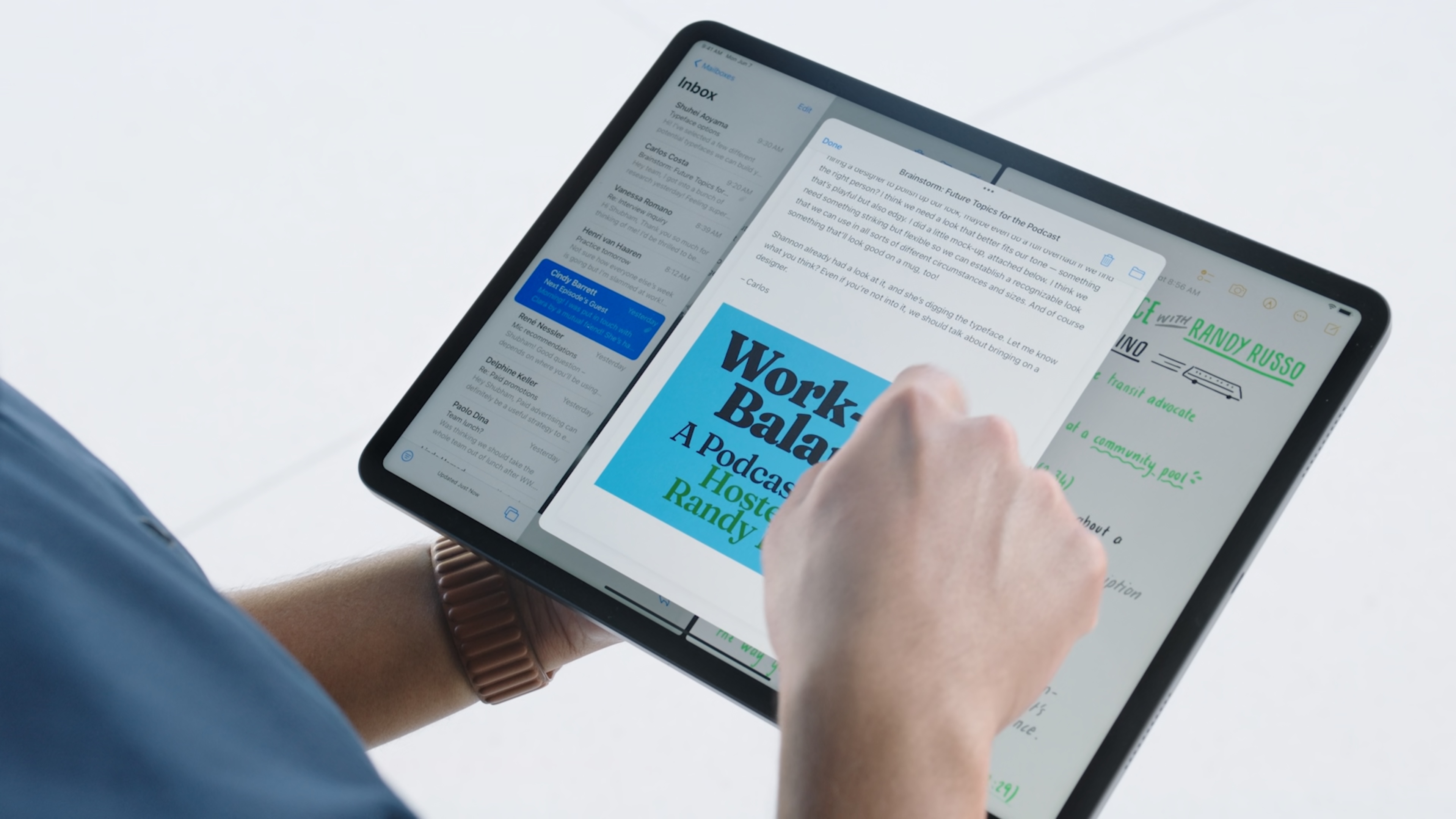 So I ask Borchers and Marineau-Mes to talk a little bit about multitasking. Specifically Apple’s philosophy in the design of multitasking on iPadOS 15 and the update from the old version, which required a lot of acrobatics of the finger and a strong sense of spatial awareness of objects hovering out off the edges of the screen.