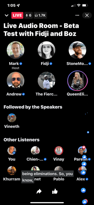 In April, Facebook announced a slew of new audio products, including its Clubhouse clone, called Live Audio Rooms, which will be available across both Facebook and Messenger. Since May, Facebook has been publicly testing the audio rooms feature in Taiwan with public figures, but today the company hosted its first public test of Live Audio Rooms in the U.S. The event itself was hosted by Facebook CEO Mark Zuckerberg, who chatted with fellow execs and creators.