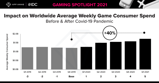The COVID-19 pandemic drove increased demand for mobile gaming, as consumers under lockdowns looked to online sources of entertainment, including games. But even as COVID-19 restrictions are easing up, the demand for mobile gaming isn’t slowing. According to a new report from mobile data and analytics provider App Annie in collaboration with IDC, users worldwide downloaded 30% more games in the first quarter of 2021 than in the fourth quarter of 2019, and spent a record-breaking $1.7 billion per week in mobile games in Q1 2021.