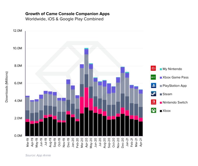 The report also analyzed the ad market around gaming and the growth of mobile companion apps for game consoles, including My Nintendo, Xbox Game Pass, PlayStation App, Steam, Nintendo Switch and Xbox apps. Downloads for these apps peaked under lockdowns in April 2020 in the U.S., but continue to see stronger downloads than pre-pandemic.