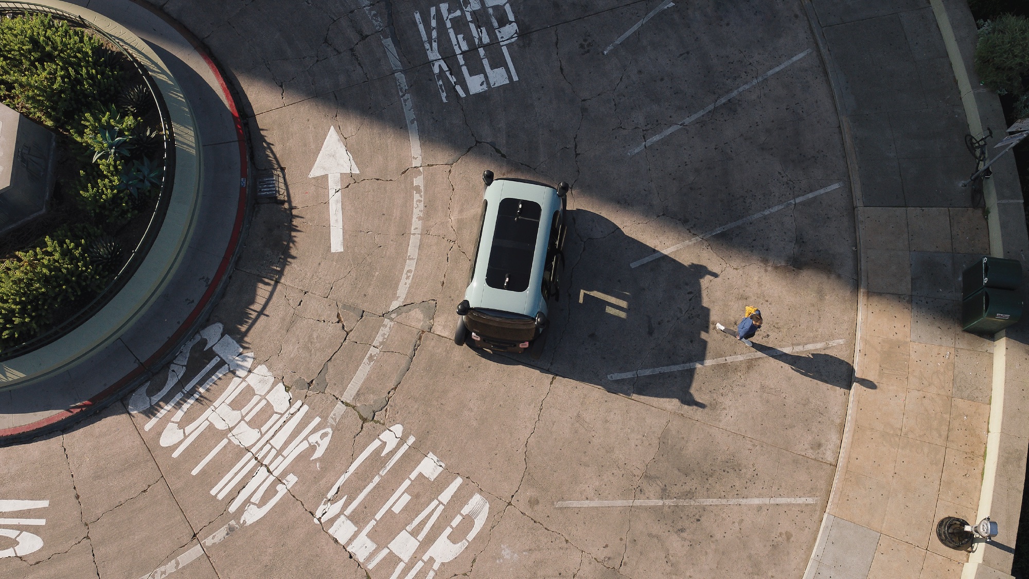 The four-wheel steering combined with the vehicle’s symmetrical design allows for it to travel bidirectionally. The bidirectional capability means no more U-turns or three-point turns, two maneuvers that are more complex, time consuming and can make occupants more vulnerable to oncoming traffic.