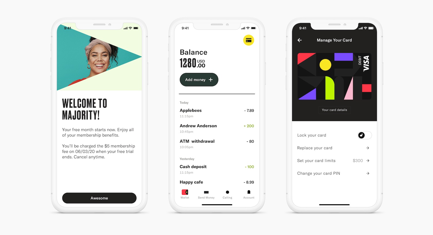 The two-year-old startup operates an eponymous mobile banking service. MAJORITY, whose name is a play on bringing financial inclusion to more people, runs a subscription service where it charges $5 a month to individuals and provides them with a range of financial services, including an FDIC-insured bank account with early direct deposit at no overdraft fee, a debit card, mobile credit and at-cost international phone calls.