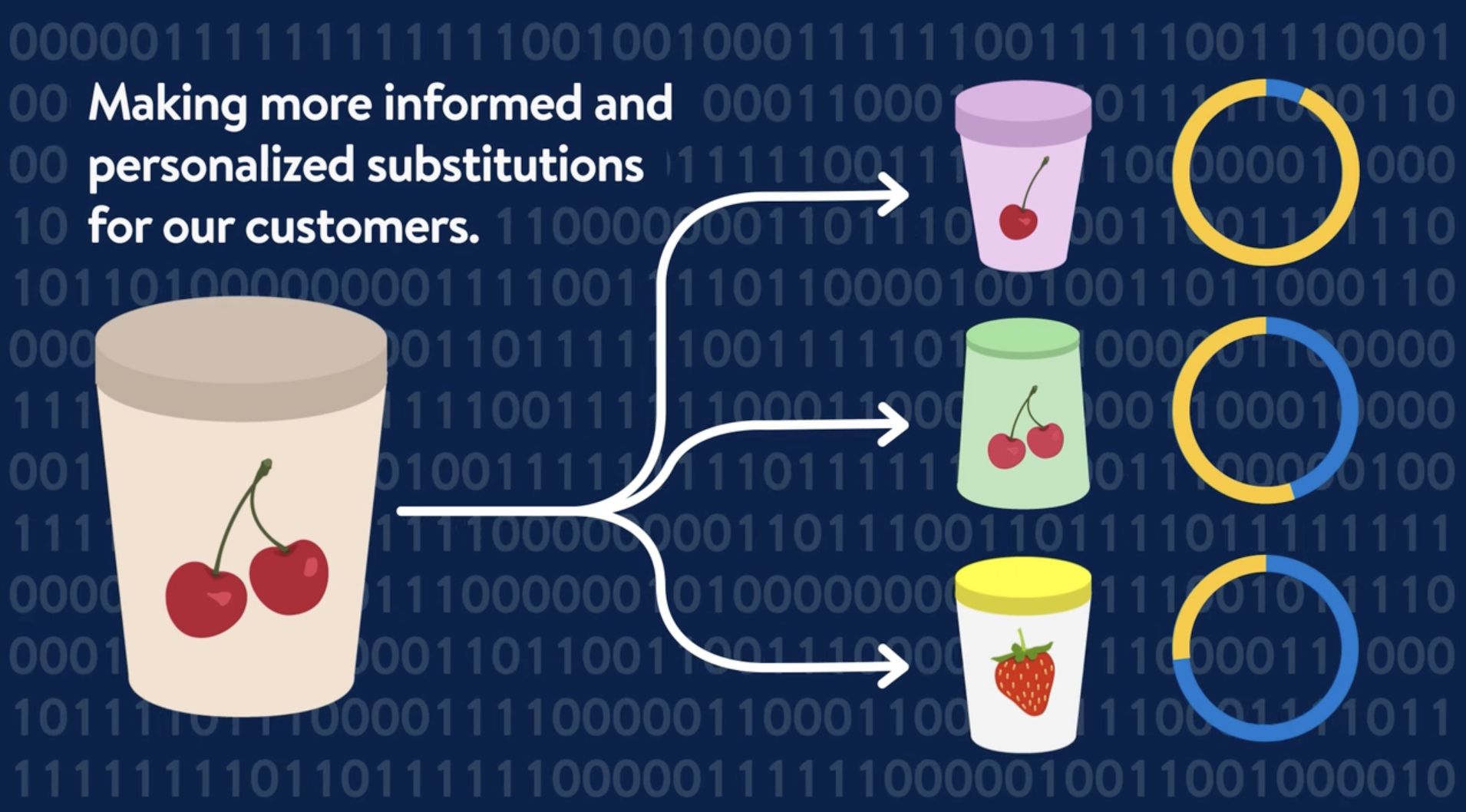 Rather than asking a personal shopper to make a quick decision about how to substitute for cherry yogurt (do you get a different flavor from the same brand, the same flavor from a more expensive brand, and so on), the AI makes that choice for them. Walmart started developing this algorithm last year, and in the time since, customer acceptance of substitutions has improved.