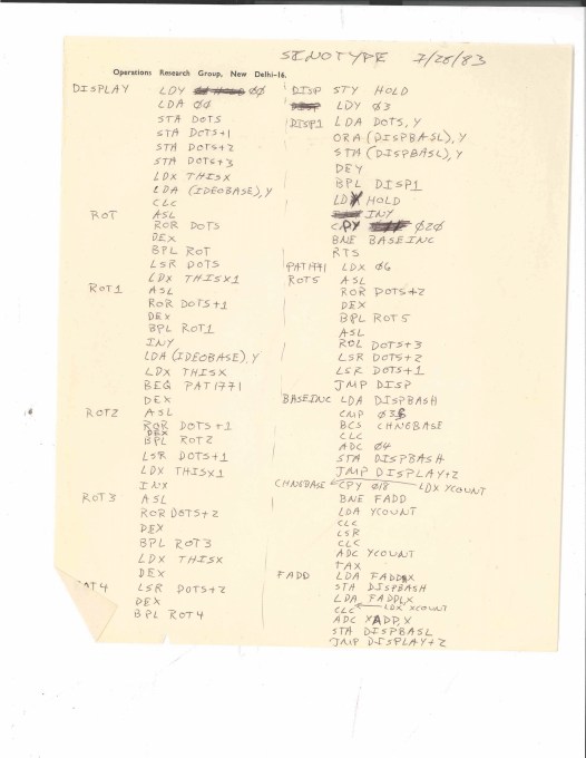 Bruce got the job and went on to program Sinotype III from June to November 1981, balancing time between this and his full-time job as a tour guide for the National Park Service at Independence Hall in Philadelphia. During daytime breaks he would write out assembly code by hand, transcribing it at night. When Labor Day in 1981 came, and Bruce’s tour guide job ended, he dedicated two months straight to finishing the code and delivered it to GARF.