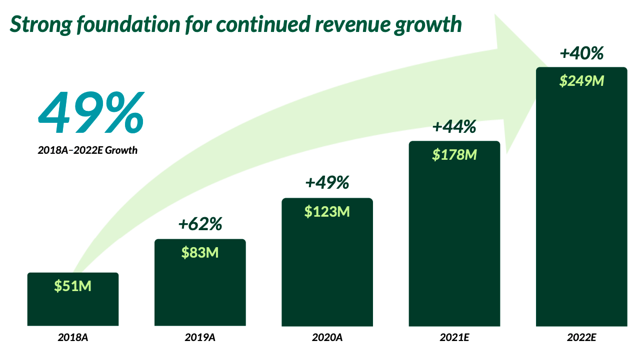 Please ignore the SoftBank-style arrow. Instead, focus on the company’s anticipated revenue growth deceleration. Nextdoor is projecting that its rate of revenue growth will slow; that after falling by 13 percentage points from 62% 2019 to 49% in 2020, it will manage a decline of just 5 percentage points in 2021 and 4 percentage points in 2022. It’s worth noting.