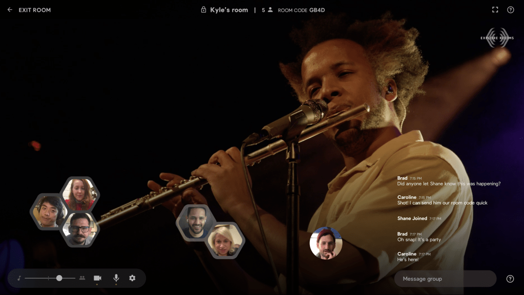 In terms of actual experience — and I had the chance to experience one of the shows (pictured above) before writing this — Flymachine has done their best to recreate the experience of shouting over the tunes to talk with your buddies nearby. In Flymachine’s world this is attending the show in a “private room” with your other friends livestreaming in video chat bubbles from their homes. It’s well done and doesn’t distract too much from the actual concert, but you can adjust the sound levels of your friends and the music when the time calls for it.