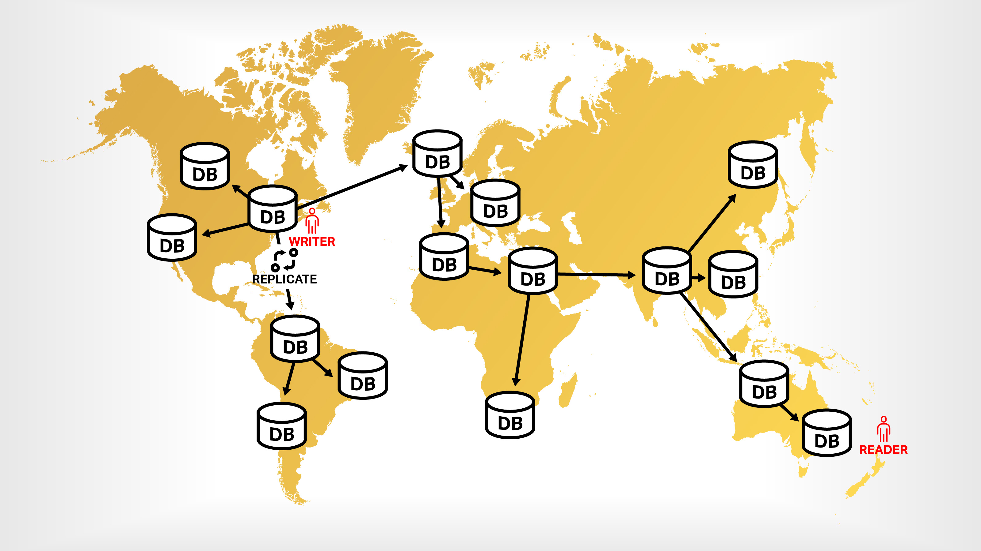 Global applications address this problem by setting up database servers all over the world. When a user makes a change in one nearby database server, it’s replicated to all the other database servers around the planet. Then when it comes time to read the data, users access the database server closest to them.