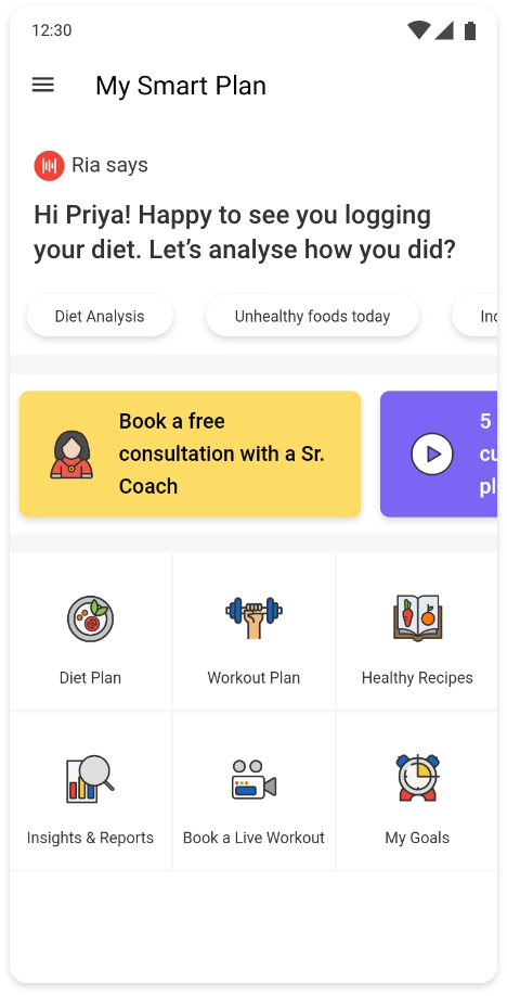 The app also has an AI-based nutritionist called Ria that is trained for cuisines in different markets through a combination of user-tracked data, guidance from local nutritionists and databases from sources like the United States Department of Agriculture.