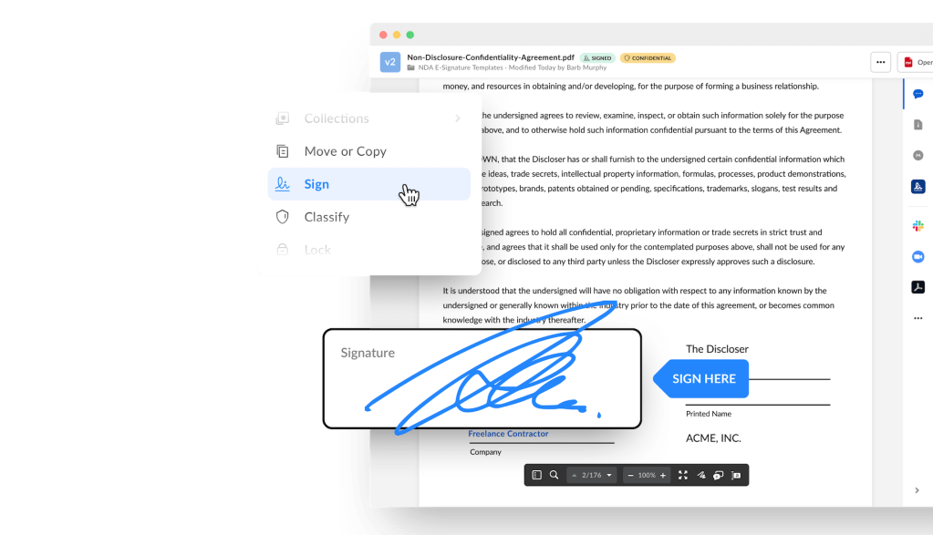 Here’s how it works: Users can send documents for e-signature directly from Box to anyone, even those without a Box account. Places for signature requests and approvals can be created anywhere on the document. All of this integrates across popular apps like Salesforce and includes email reminders and deadline notifications. As with Box’s offerings, the signatures are also secure and compliant.