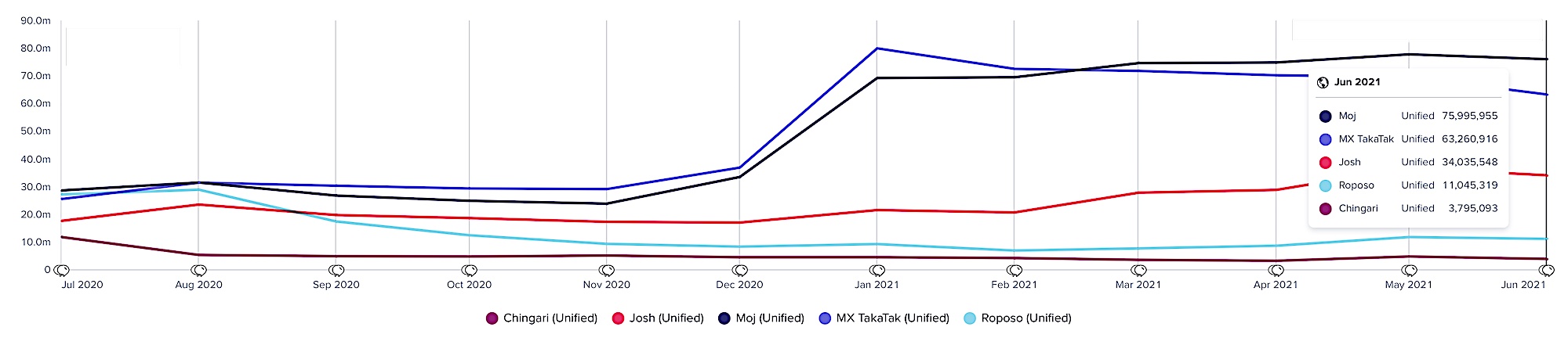 Moj, on the other hand, competes with a handful of players, including Times Internet’s MX TakaTak, as well as Glance’s Roposo and DailyHunt’s Josh — both of which received funding from Google late last year. The search giant was also in talks to invest in ShareChat late last year, TechCrunch reported earlier.