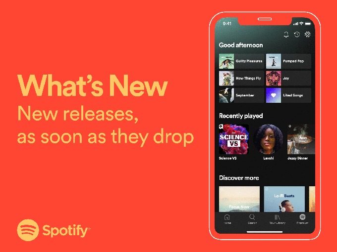 Spotify is taking a cue from social networks like Facebook, which deliver a constant stream of notifications under a “bell” icon in the mobile app to keep users engaged with the latest content. This morning, Spotify introduced what it’s calling the “What’s New” feed, which will deliver an ongoing series of updates to mobile app users focused on new releases.
