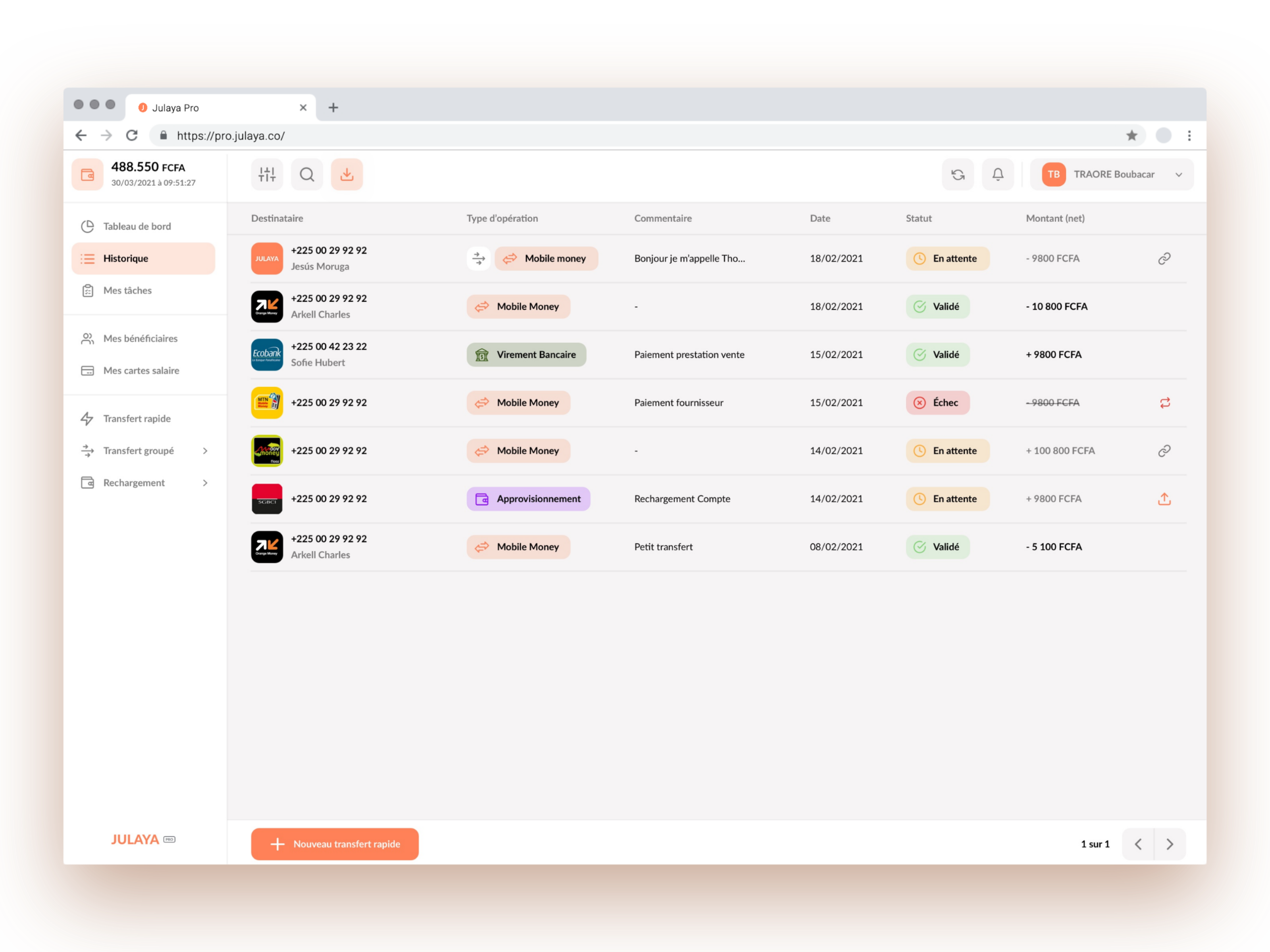 Julaya was founded in 2018 by Mathias Léopoldie and Charles Talbot. Before launching Julaya, they worked at French payment fintech LemonWay on their service in Mali and Burkina Faso.