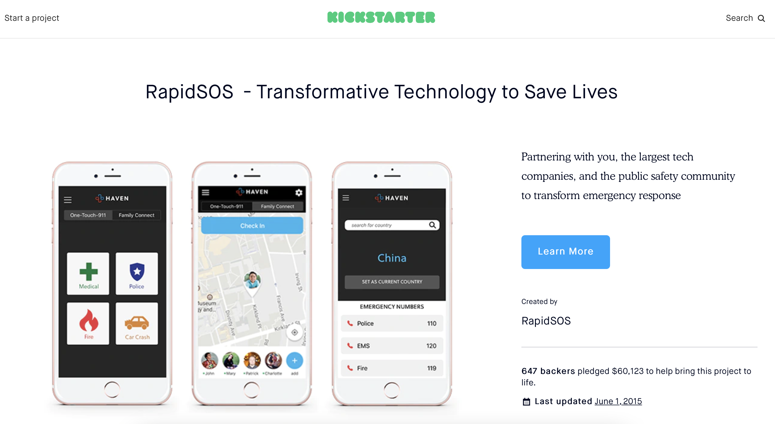 He even tried to stuff the Kickstarter box a bit to bring some momentum to the flagging campaign. “I went to the bank [and] I think I got like $500 in $1 bills, and I was this 26-year-old kid, so the bank teller was like, ‘It’s shady,’” he recounted. He went to Harvard’s dining halls and handed out the dollar bills paper-clipped to business cards with the RapidSOS Kickstarter link on it. “All these privileged kids at Harvard, only like 20%” actually offered the dollar back to the Kickstarter, Martin laughed. “In hindsight, I think there were strong signs that maybe the consumer app wasn’t going to work.”
