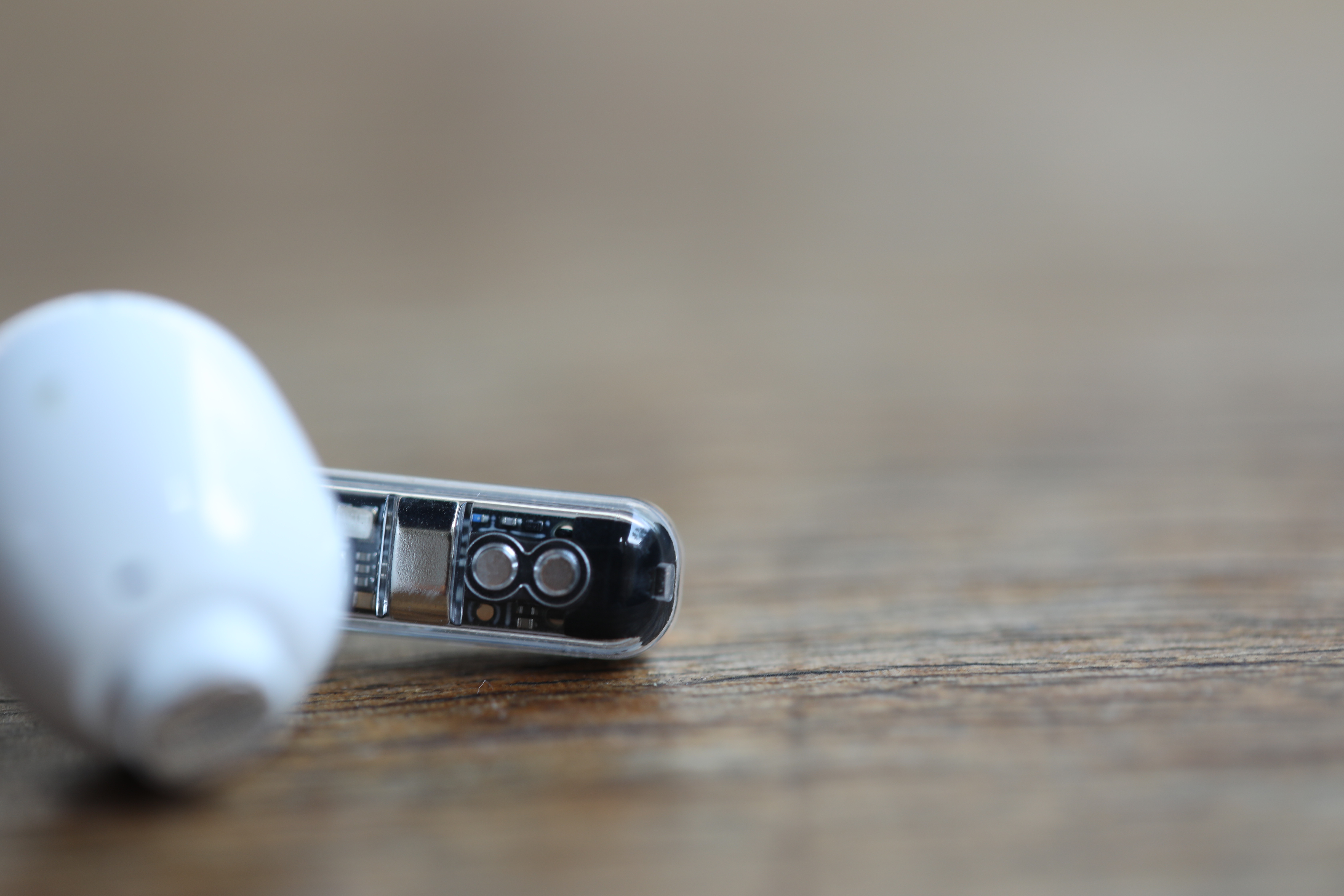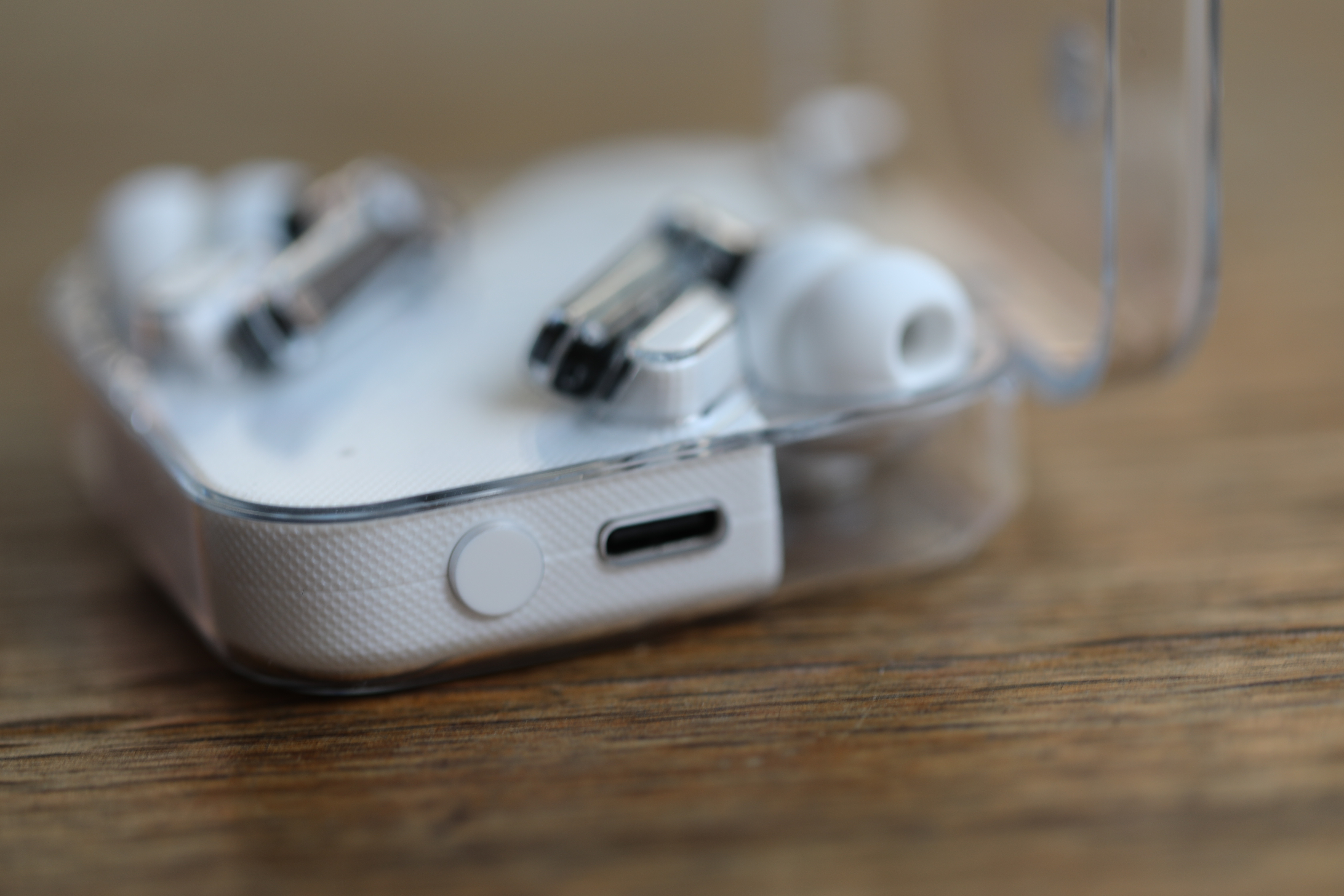 In a vacuum, the buds look a fair bit like an Apple product. The glossy white finish and white silicone tips are a big part of that. The reason the entire buds aren’t transparent, as early renderings showed, is a simple and pragmatic one: the components in the buds are too unsightly. That brings us to another element in the product’s eventual delay: making a gadget clear requires putting thought into how things like components and glue look. It’s the same reason why there’s a big white strip in the middle of an otherwise clear case: charging components are ugly (sorry/not sorry).