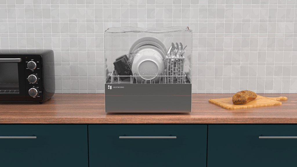 The dishwasher can wash and dry three place settings worth of dishes per load. On the surface, it might seem wasteful compared with cleaning those plates, cups and utensils manually, not to mention the counter space the machine will hog. However, Heatworks claims the machine requires less water than handwashing and rinsing the dishes.